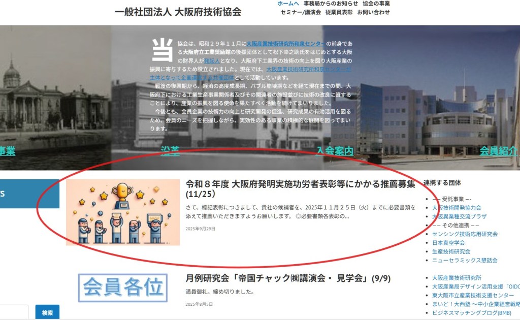 推薦時期(10月~12月)には、当年度の募集案内をトップページに掲載していますので(下記参照)、そちらの情報を優先して確認願います。