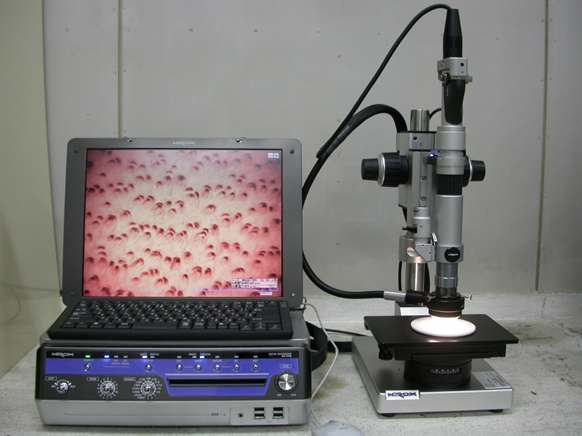 | □デジタルマイクロスコープ 試料の色や形状を、大気中で高倍率(約1,000~2,000倍)に観察することが可能です。メタルハライドランプにより、自然光とほぼ同じ見え方で観察できます。また、凹凸のある試料では、3次元画像を得ることも可能です。 | ![]() |