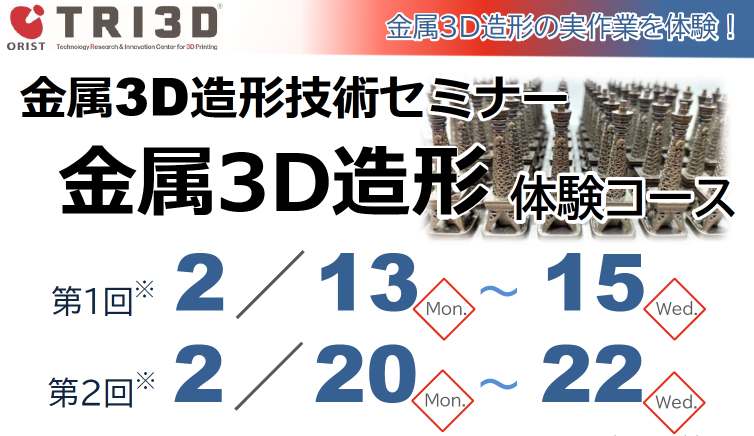 金属3D造形技術セミナー◆金属3D造形体験コース(2/13~,2/20~)